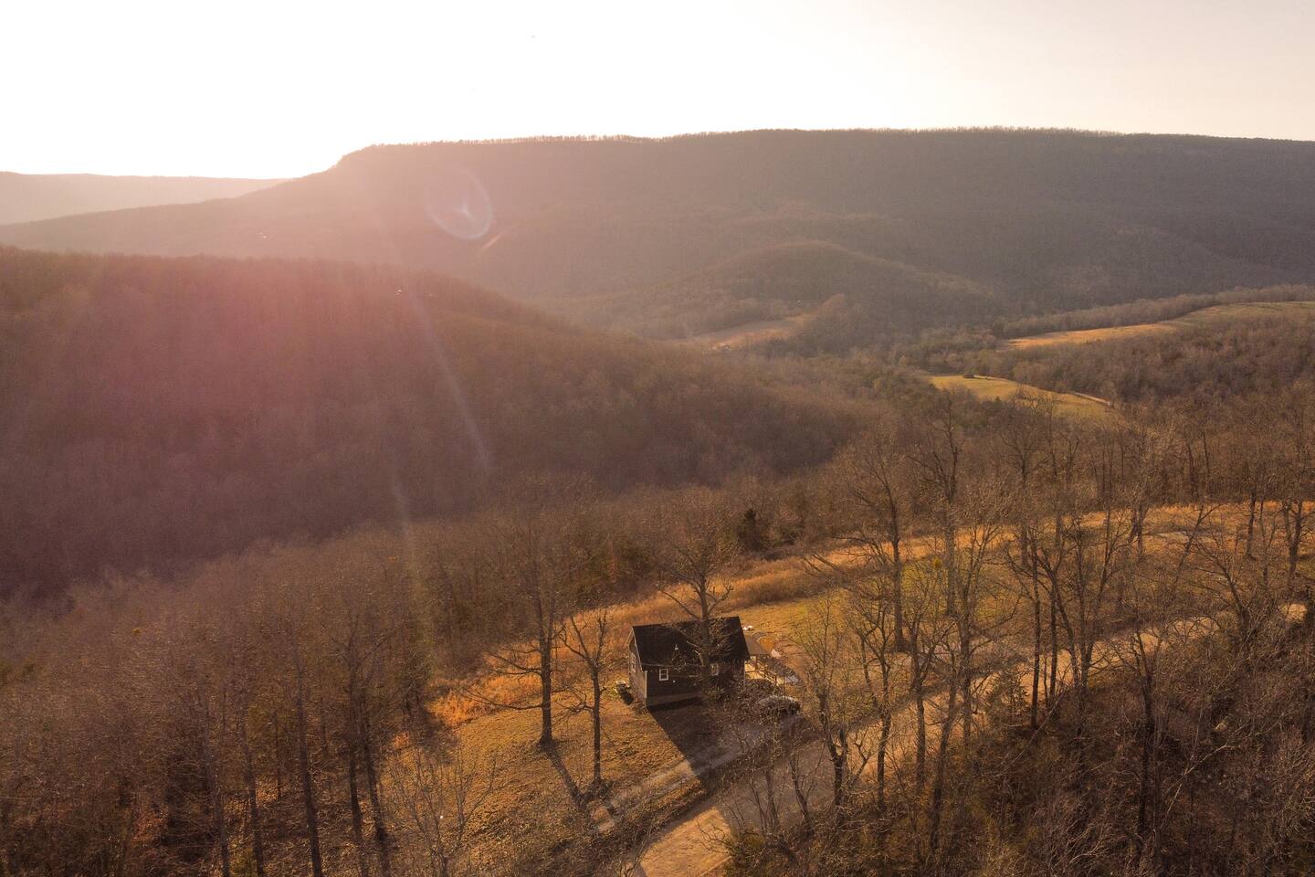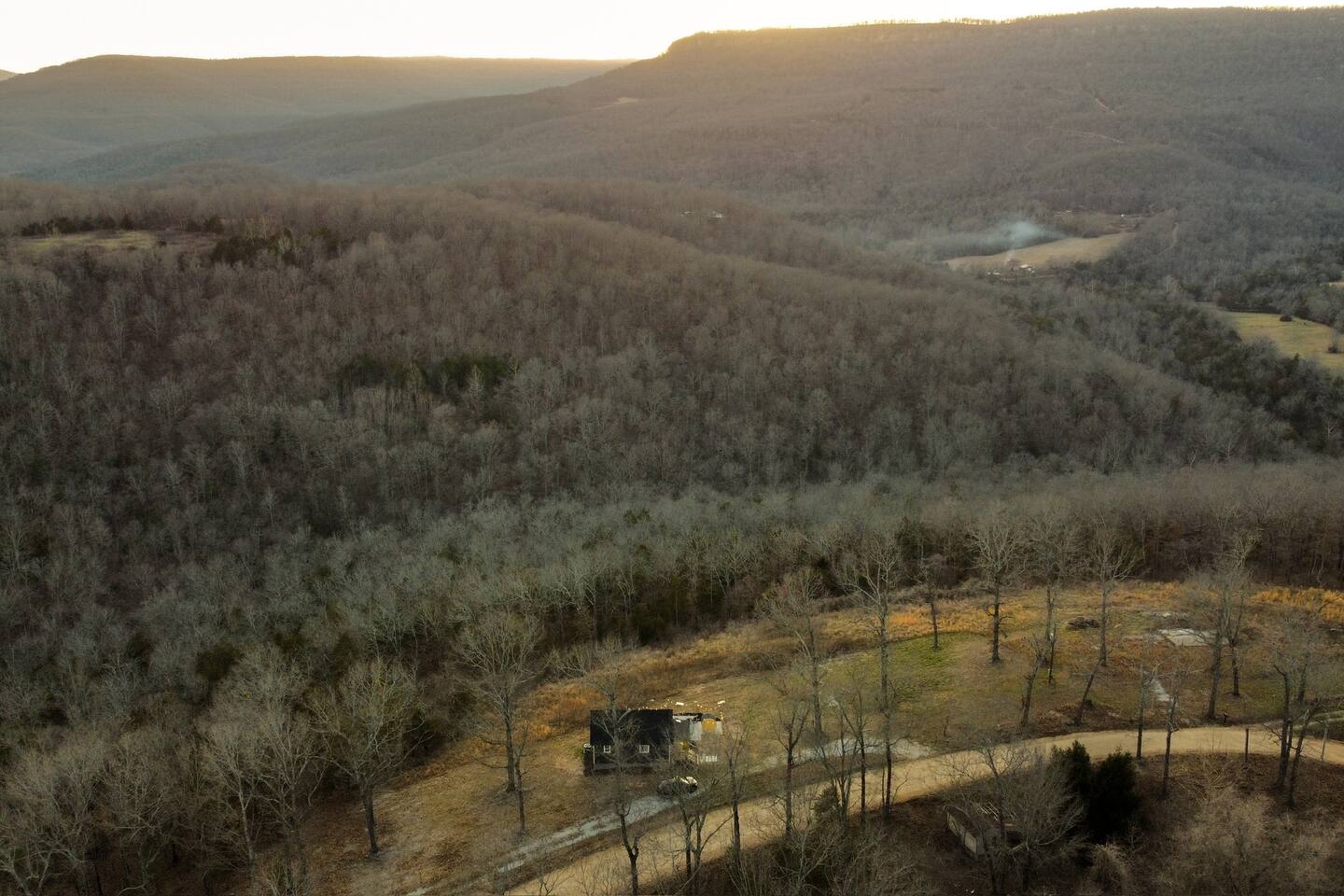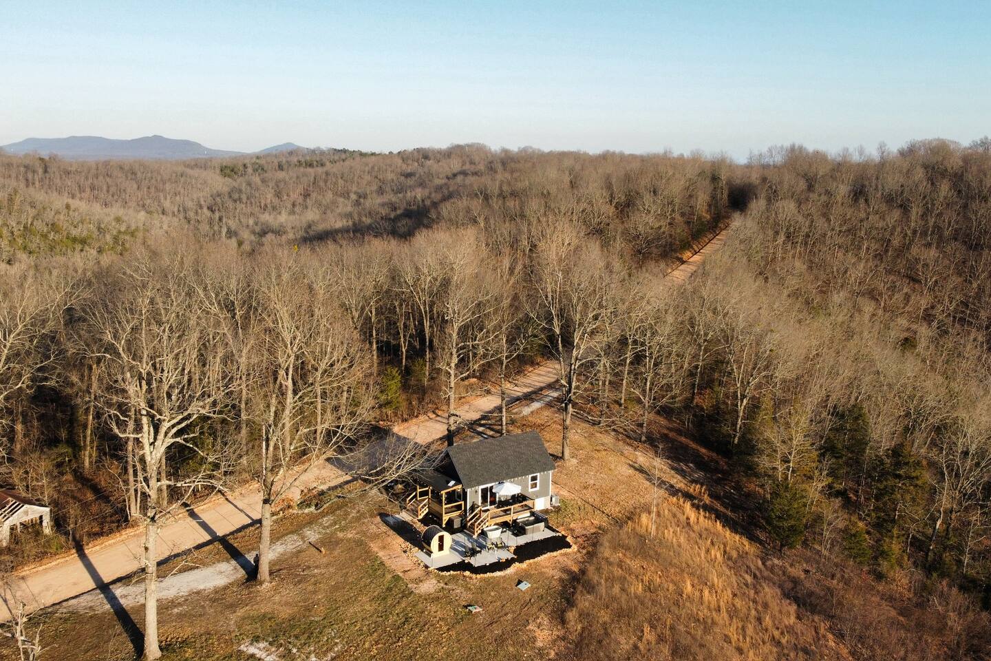 Welcome to Sauna & Stars Ozark Escape, your secluded luxury retreat in the heart of the Ozark Mountains. Nestled among breathtaking mountain and forest views, this private getaway is designed for relaxation and adventure. Here’s a glimpse of what awaits: ✔ Expansive Patio with Sauna, Hot Tub & Sunset Seating ✔ Stunning Mountain & Forest Views ✔ Luxury Interior with Wood Beams & Modern Furniture ✔ European Kitchen Appliances + Reverse Osmosis Drinking Water ✔ Smart TV ✔ Vintage Board Games & Meditation Cards ✔ Outdoor Yard Games: Corn Hole & Kubb ✔ Telescope for Stargazing ✔ Yoga Mats & Essential Oil Diffuser for Relaxation ✔ Located near Buffalo National River & Top Hiking Trails The Space: Your journey begins with a scenic drive, with the last 2.5 miles along a maintained dirt road, leading to your private mountain escape. Natural Arkansas rock landscaping blends seamlessly with the surroundings, enhancing the tranquility of this retreat. Step onto the expansive concrete patio, where the hot tub and sauna offer the ultimate wellness experience. Enjoy morning coffee on the deck, grill out on the propane BBQ, or gather under the stars for a peaceful evening. Inside, the luxury-designed interior features wood beams, modern furniture, and large windows framing the stunning views. The kitchen has everything you need, including drip and pod coffee makers, blender, pots/pans. A reverse osmosis water system ensures the purest drinking water. The main floor bedroom features a king bed and blackout curtains for restful sleep. A ladder leads to the loft bedroom, which has a queen bed and a desk—perfect for remote work or reading. Entertainment & Relaxation: ✔ 65-inch Smart TV ✔ Indoor Vintage Board Games & Playing Cards ✔ Outdoor Games: Cornhole & Kubb ✔ Telescope for Stargazing Under the Clear Ozark Skies ✔ Yoga Mats & Essential Oil Diffuser for Mindfulness moments Other Things to Note: ✔ Loft access: The loft bedroom is accessed by a ladder—please use caution. ✔ Security cameras: One doorbell camera at the entrance and one road-facing camera for security. ✔ Secluded location: Expect peace & quiet, but also potential encounters with local wildlife. As with ALL cabins in the Ozark National Forest, there may be a critter or bug. We do routine pest control. ✔ Dirt road access: The last 2.5 miles are on a maintained dirt road—most vehicles can access it, but low-clearance cars should use caution. ✔ Escape the ordinary and unwind in pure mountain serenity at Sauna & Stars Ozark Escape. Whether you’re seeking adventure or relaxation, this private retreat is the perfect getaway. ✔ There is no door on the loft bedroom. ✔ Lawn maintenance may occur during business hours, Monday through Friday