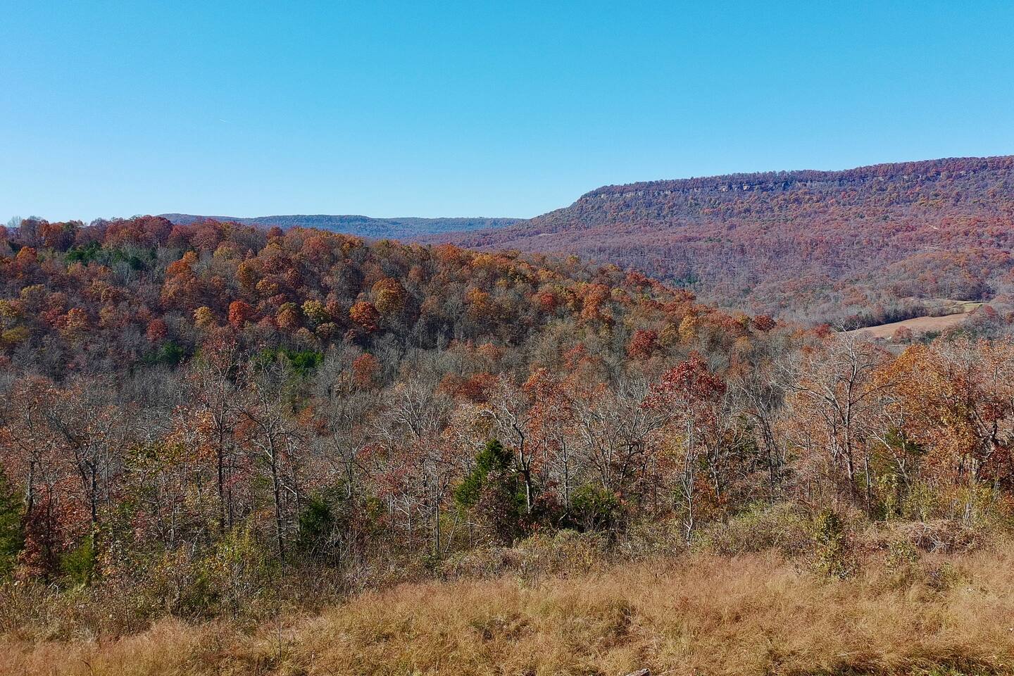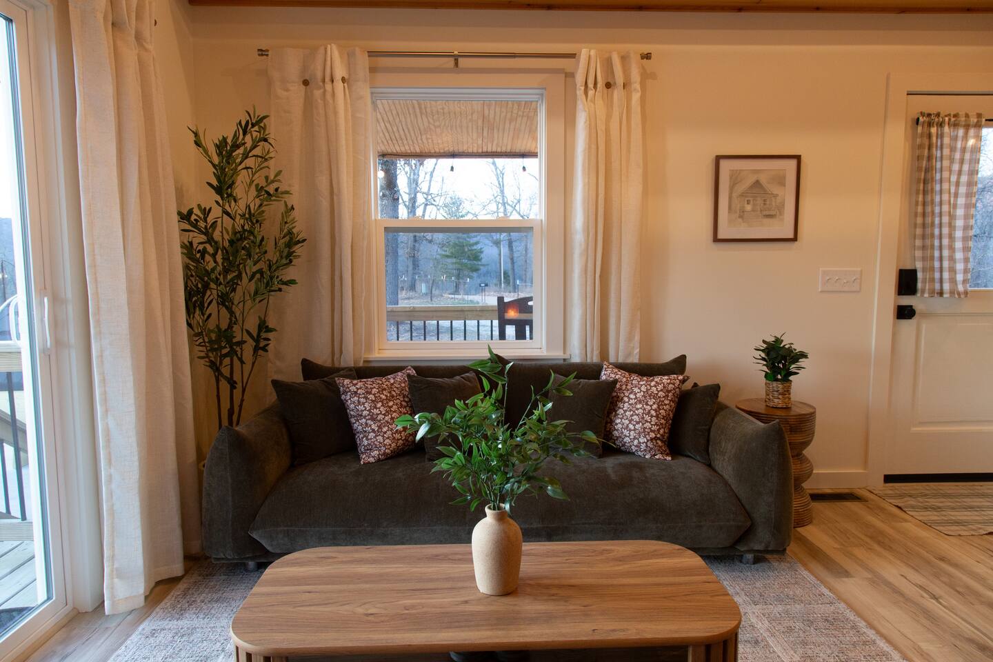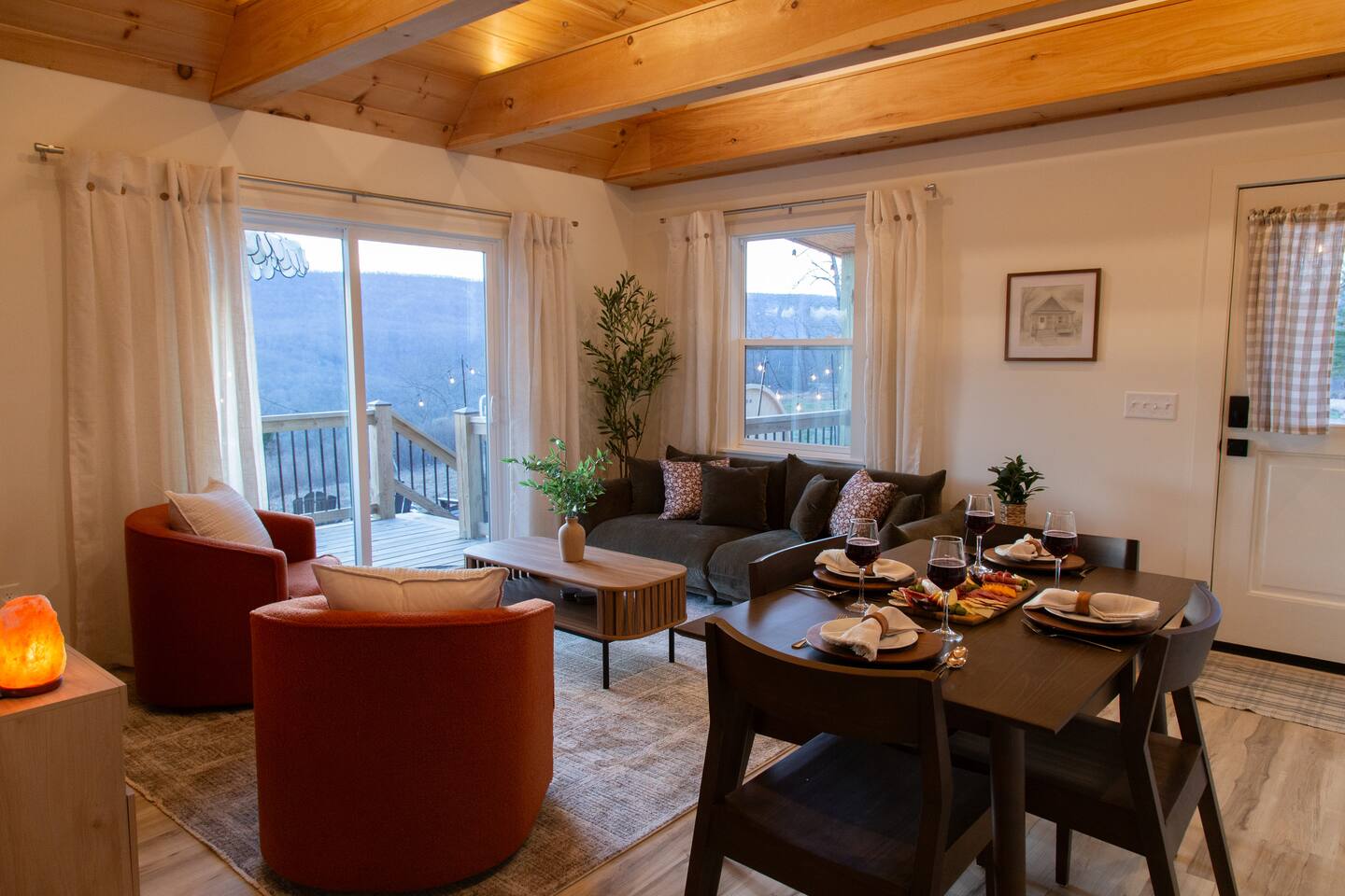 Welcome to Sauna & Stars Ozark Escape, your secluded luxury retreat in the heart of the Ozark Mountains. Nestled among breathtaking mountain and forest views, this private getaway is designed for relaxation and adventure. Here’s a glimpse of what awaits: ✔ Expansive Patio with Sauna, Hot Tub & Sunset Seating ✔ Stunning Mountain & Forest Views ✔ Luxury Interior with Wood Beams & Modern Furniture ✔ European Kitchen Appliances + Reverse Osmosis Drinking Water ✔ Smart TV ✔ Vintage Board Games & Meditation Cards ✔ Outdoor Yard Games: Corn Hole & Kubb ✔ Telescope for Stargazing ✔ Yoga Mats & Essential Oil Diffuser for Relaxation ✔ Located near Buffalo National River & Top Hiking Trails The Space: Your journey begins with a scenic drive, with the last 2.5 miles along a maintained dirt road, leading to your private mountain escape. Natural Arkansas rock landscaping blends seamlessly with the surroundings, enhancing the tranquility of this retreat. Step onto the expansive concrete patio, where the hot tub and sauna offer the ultimate wellness experience. Enjoy morning coffee on the deck, grill out on the propane BBQ, or gather under the stars for a peaceful evening. Inside, the luxury-designed interior features wood beams, modern furniture, and large windows framing the stunning views. The kitchen has everything you need, including drip and pod coffee makers, blender, pots/pans. A reverse osmosis water system ensures the purest drinking water. The main floor bedroom features a king bed and blackout curtains for restful sleep. A ladder leads to the loft bedroom, which has a queen bed and a desk—perfect for remote work or reading. Entertainment & Relaxation: ✔ 65-inch Smart TV ✔ Indoor Vintage Board Games & Playing Cards ✔ Outdoor Games: Cornhole & Kubb ✔ Telescope for Stargazing Under the Clear Ozark Skies ✔ Yoga Mats & Essential Oil Diffuser for Mindfulness moments Other Things to Note: ✔ Loft access: The loft bedroom is accessed by a ladder—please use caution. ✔ Security cameras: One doorbell camera at the entrance and one road-facing camera for security. ✔ Secluded location: Expect peace & quiet, but also potential encounters with local wildlife. As with ALL cabins in the Ozark National Forest, there may be a critter or bug. We do routine pest control. ✔ Dirt road access: The last 2.5 miles are on a maintained dirt road—most vehicles can access it, but low-clearance cars should use caution. ✔ Escape the ordinary and unwind in pure mountain serenity at Sauna & Stars Ozark Escape. Whether you’re seeking adventure or relaxation, this private retreat is the perfect getaway. ✔ There is no door on the loft bedroom. ✔ Lawn maintenance may occur during business hours, Monday through Friday