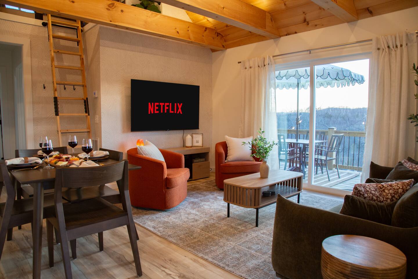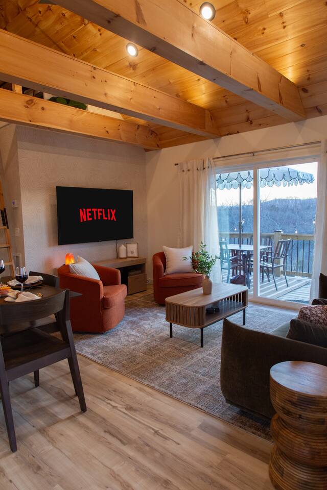 Sneak away to Sauna & Stars: Ozark Escape, a secluded getaway designed for relaxation & adventure. Unwind in the hot tub & sauna while soaking in breathtaking mountain views. Stargaze, enjoy yard games, or cozy up for a movie on the 65” TV with Starlink. This private retreat features a main level king bed + loft queen bed. European kitchen appliances & premium RO water system. Perfect for couples seeking peace, nature, & luxury–your dream escape in the Ozarks!